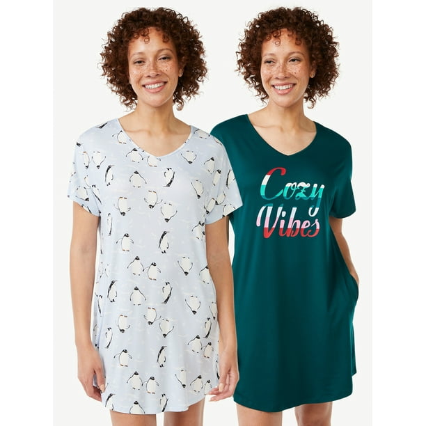 Joyspun Women S Short Sleeve Sleepshirt 2 Pack Sizes S To 3x Walmart Com
